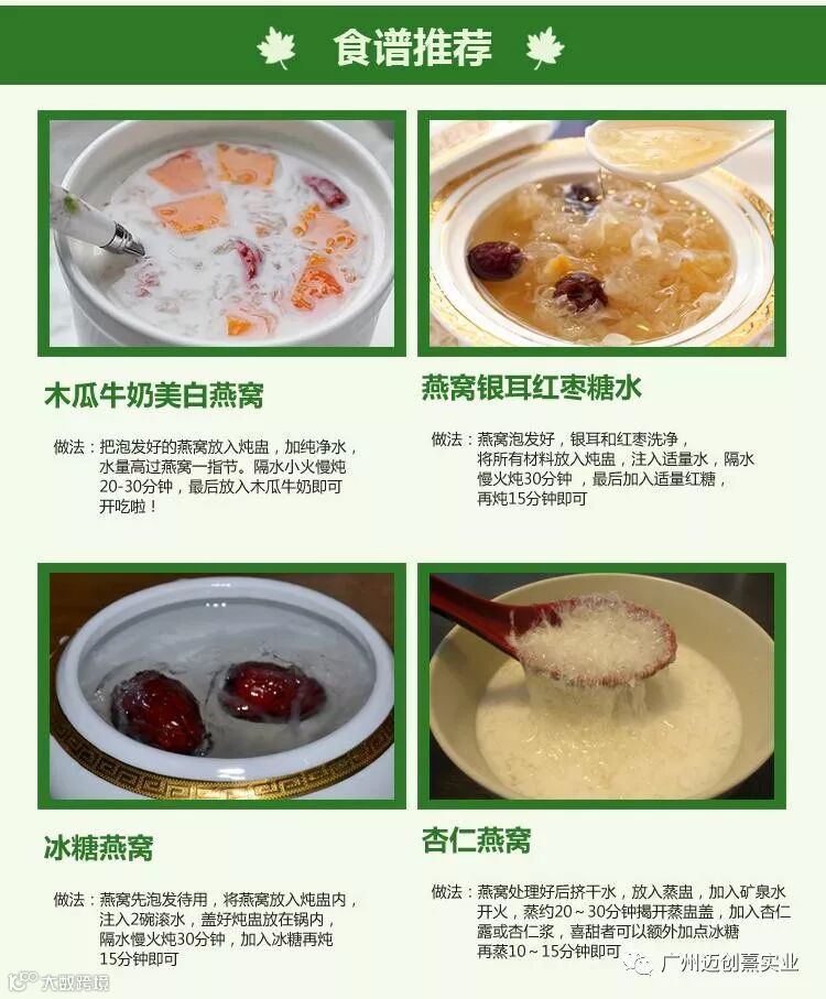 10. 燕窝味甘性平、滋阴润燥,是有营养的有益食品,有保健食疗之效,是大众欢迎之健康食品。