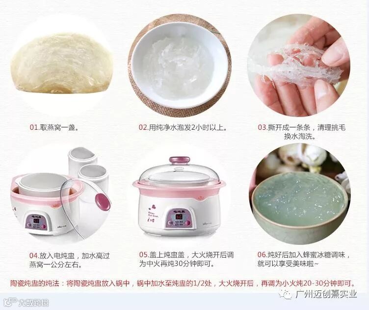 1.初生婴儿:把燕窝炖溶成水,混合在奶中,或加在米糊中,有帮助消化,调理肠胃或增加食欲之效果