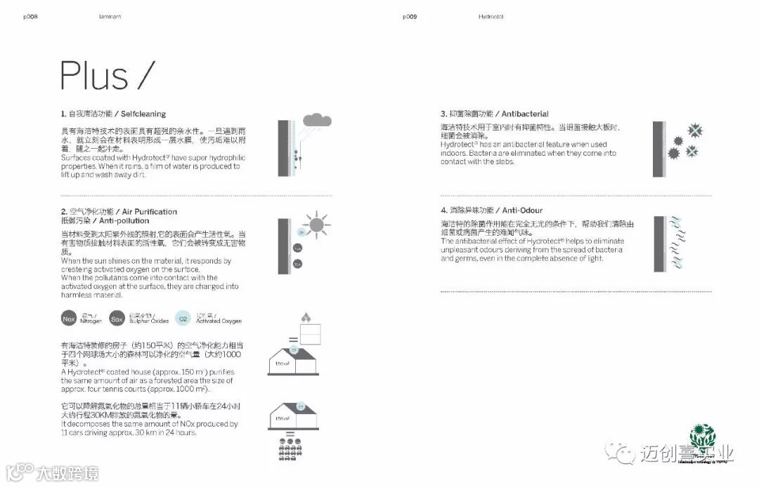 因压机力大,去掉传统模具,使得原料均匀统一扩散,使得产品尺寸大,密度高,稳定性强,表面平整度搞,坚实光滑,适合多领域应用,代替传统的天然石材,石英石,人造石等材料。同时laminam公司不断创新,产品颜色丰富,同时三种处理面:Naturale( 自然面),lucidato(抛光面)和 Soft touch(轻柔哑光),使得产品具有高度美学之感,是目前高端厨房台面的不二之选。