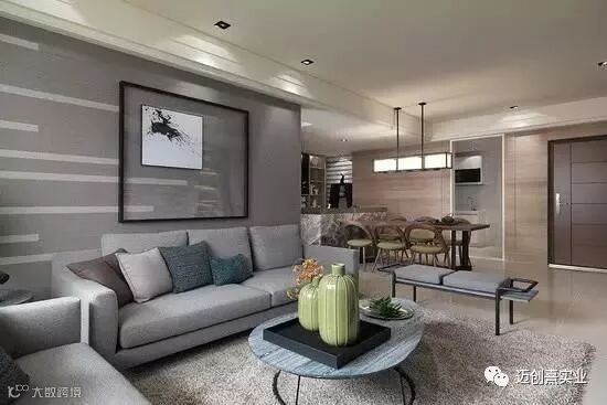 客厅的电视做为一般家庭的必备品,在我们家基本上是没有用武之地的与其摆在那里既不美观又占地方,不如直接不要,黑框的玻璃推拉门,保证了客厅的采光与照明,在视觉上也更开阔。
