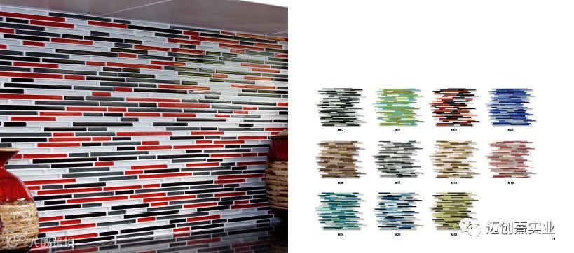 圆形的精致搭配。大小不同的圆形组合, 中间补充进小雨滴颗粒, 不但填补空档, 而且给圆形造型之间穿插了更多的形状变化,使产品的表现活泼可爱, 富有动感. 尤其在使用混色时, 效果更加强烈。该产品在家装中被广泛推荐使用,如儿童卫浴间、极富表现力的形象墙等,如果作为腰线或装饰条使用,也会让空间产生极强的亲切感并催生欢快情绪。商业空间的应用上这款产品也可以大显身手,高档洗浴中心、美容中心、咖啡厅、潮流服饰店、高档礼品店等都是很好应用该产品的理想场所。这款产品也备有专门的安装指南, 安装前请仔细阅读安装要点。