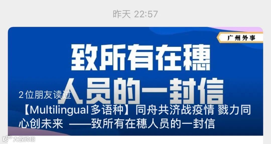 三、广州市采取全面、严格、彻底的防控举措,无论国籍、肤色、性别,采取疫情防控措施一视同仁,坚决反对任何针对特定人群的差异性做法,对歧视性言行零容忍。