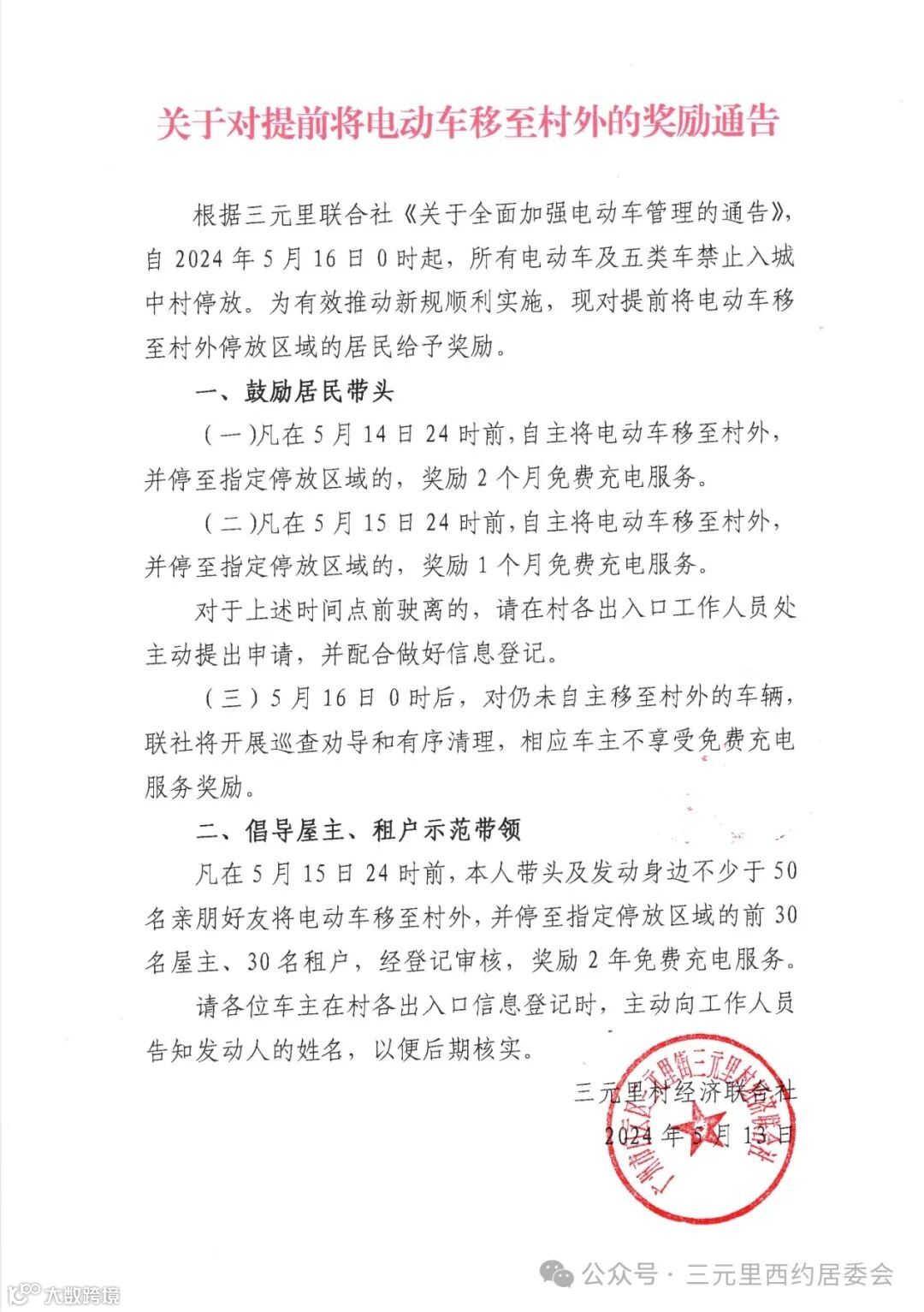 A4:由于《通告》于5月16日0时起正式实施,因此将于实施当日对村内充电设备进行断电处理,并逐步撤销村内充电设备。近期正按计划推进充电设施的布局优化工作,将于15日前在三元里村外围停放区域建成充电柜、充电桩超过2000个充电端口,确保满足群众电动车轮流充电需求。并在充电站点配置水基灭火器,逐步在村的主要出入口放置微型消防车,形成快速反应网络,一旦有紧急情况,救援力量可迅速抵达救早灭小。后续也将根据用户反馈以及电动车数量的变化,适时增加充电设施。