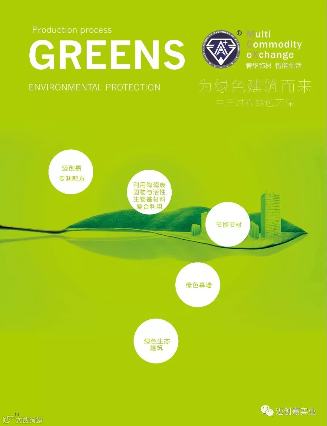 迈创熹,作为中国建陶企业从“中国制造”向“中国质造”跨越的典范,在“标榜中国建陶新高度”同时,让世界重新认识中国,助力中国从“建陶大国”到“建陶强国”的跨越,通过不懈的能力,致力于成为“世界领先的功能建陶集成服务商”。