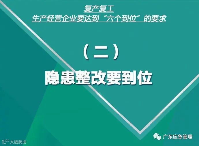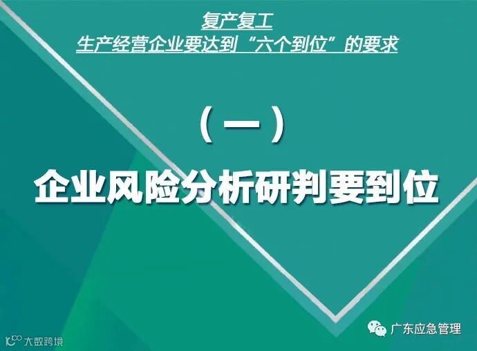 企业复工复产要落实“六个一”的措施,要达到“六个到位”的要求。企业只要做了“六个一”,做到“六个到位”,复工复产就是安全的。