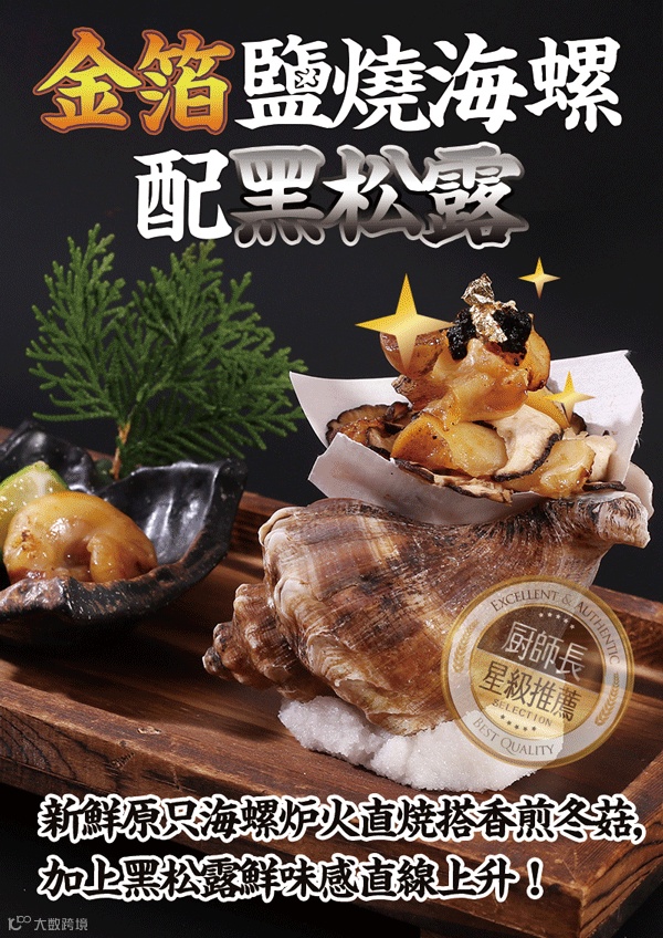 凡在本文下方留言并入选精选留言,即有机会获得新菜免费体验券~预设:金箔盐烧海螺配黑松露1份、铁板爆膏鱿5份、炎炙明太子土豆10份~请积极留言并用力点赞!