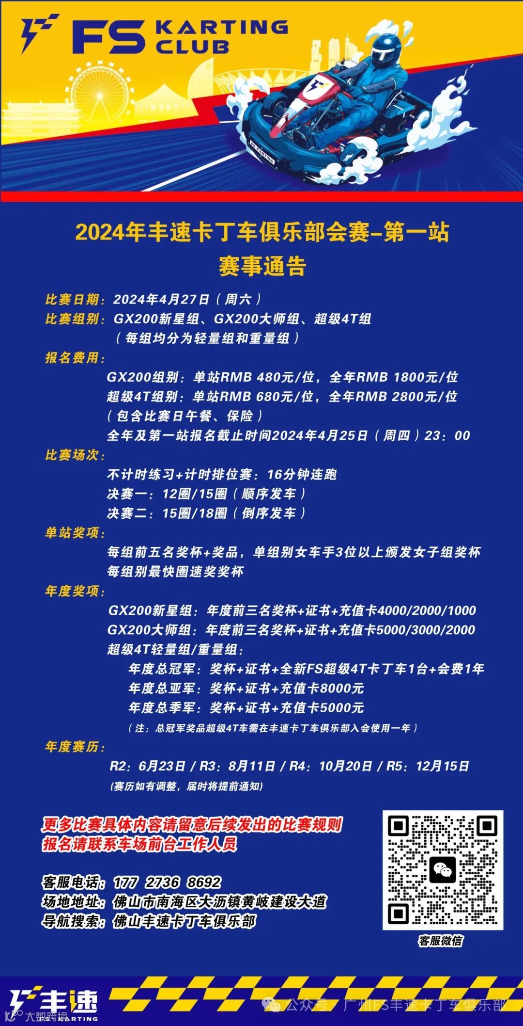 年度总冠军:奖杯+证书+全新FS超级4T卡丁车1台+会费1年