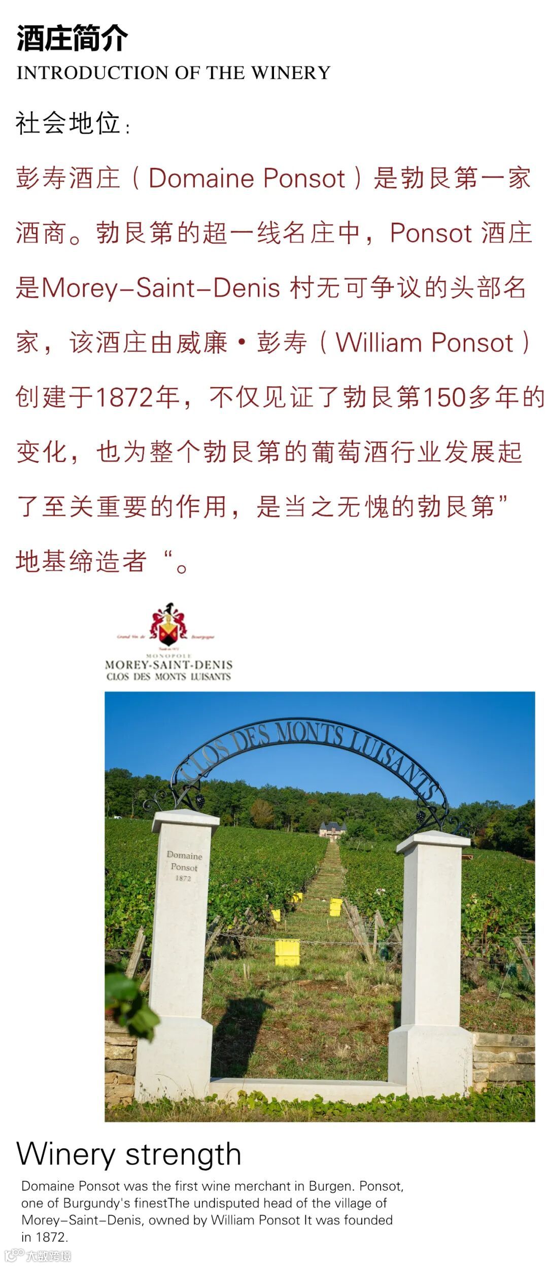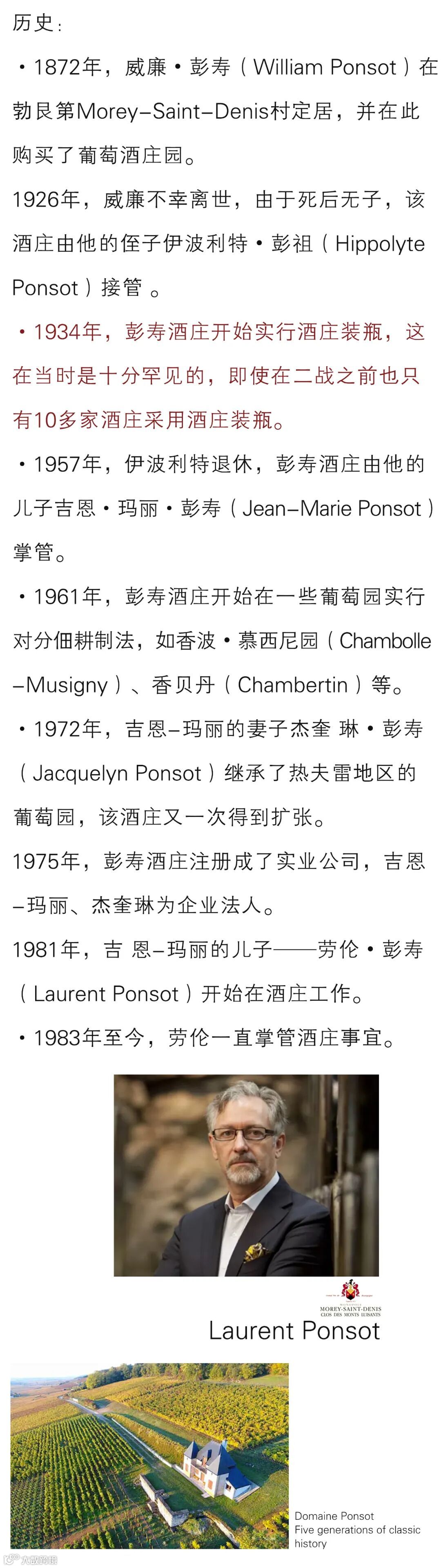 导读:Domaine Ponsot是勃艮第一家酒商,该酒庄由威廉•彭寿(William Ponsot)创建于1872年。·奠定当今全球黑皮诺版图格局的历史性酒庄·五代传承的经典历史名家·优异风土名片,独特酿