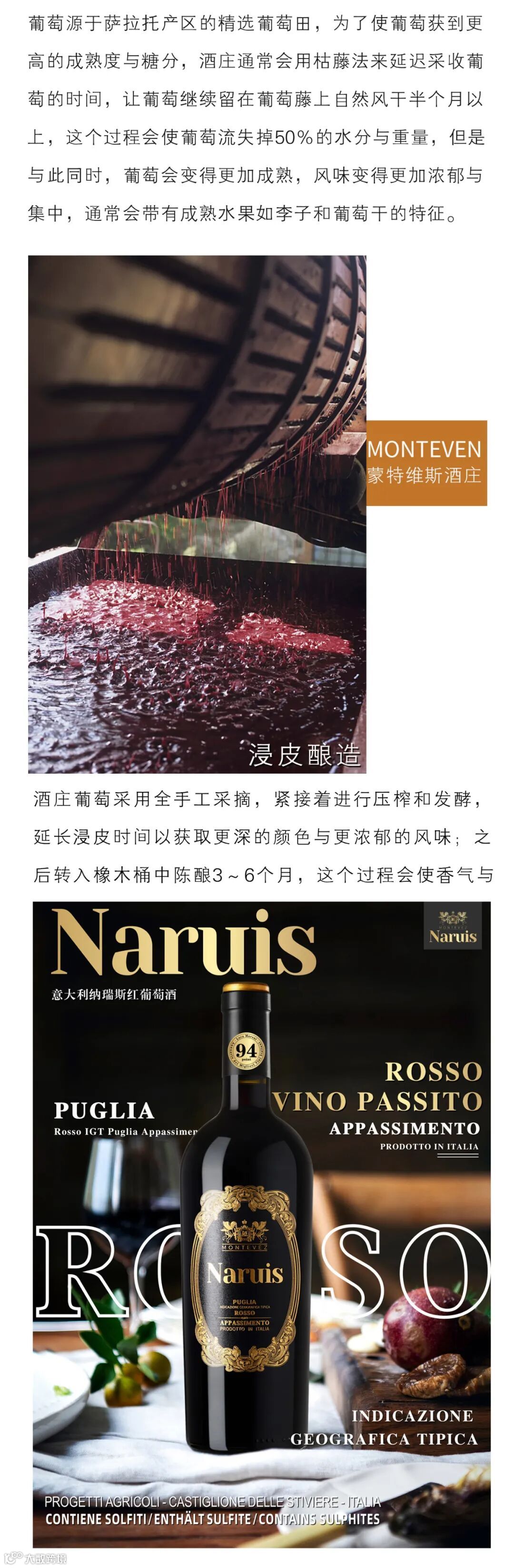 导读:-“小阿马罗尼”-纳瑞斯风干葡萄酒-来自普利亚的风干代表-葡萄自然风干20天-纯手工精心采摘