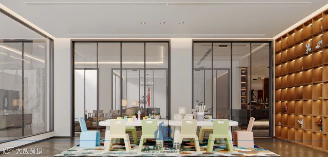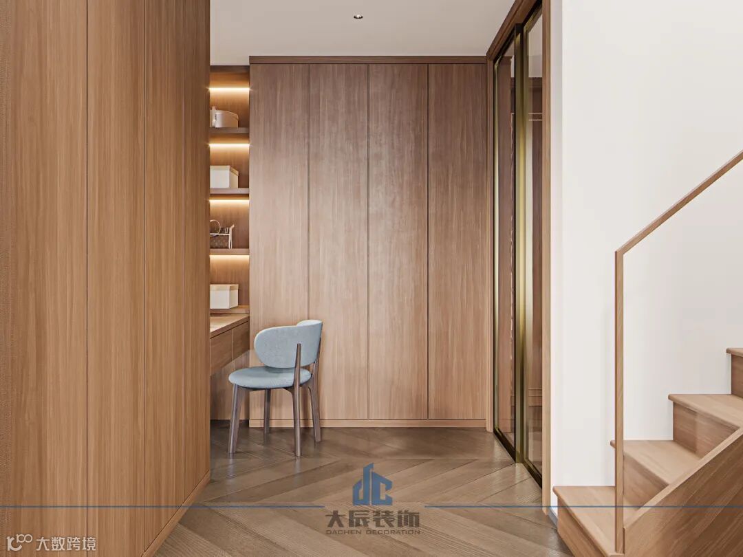-1F这一层的设计充满了创意和巧思,大面积的柜子巧妙地将会客厅和休闲娱乐分开,既保证了空间的独立性,又满足了基本需求,又实现了功能的多样性。在这里,家人可以尽情享受精神上的洗礼,感受家的温暖和幸福。