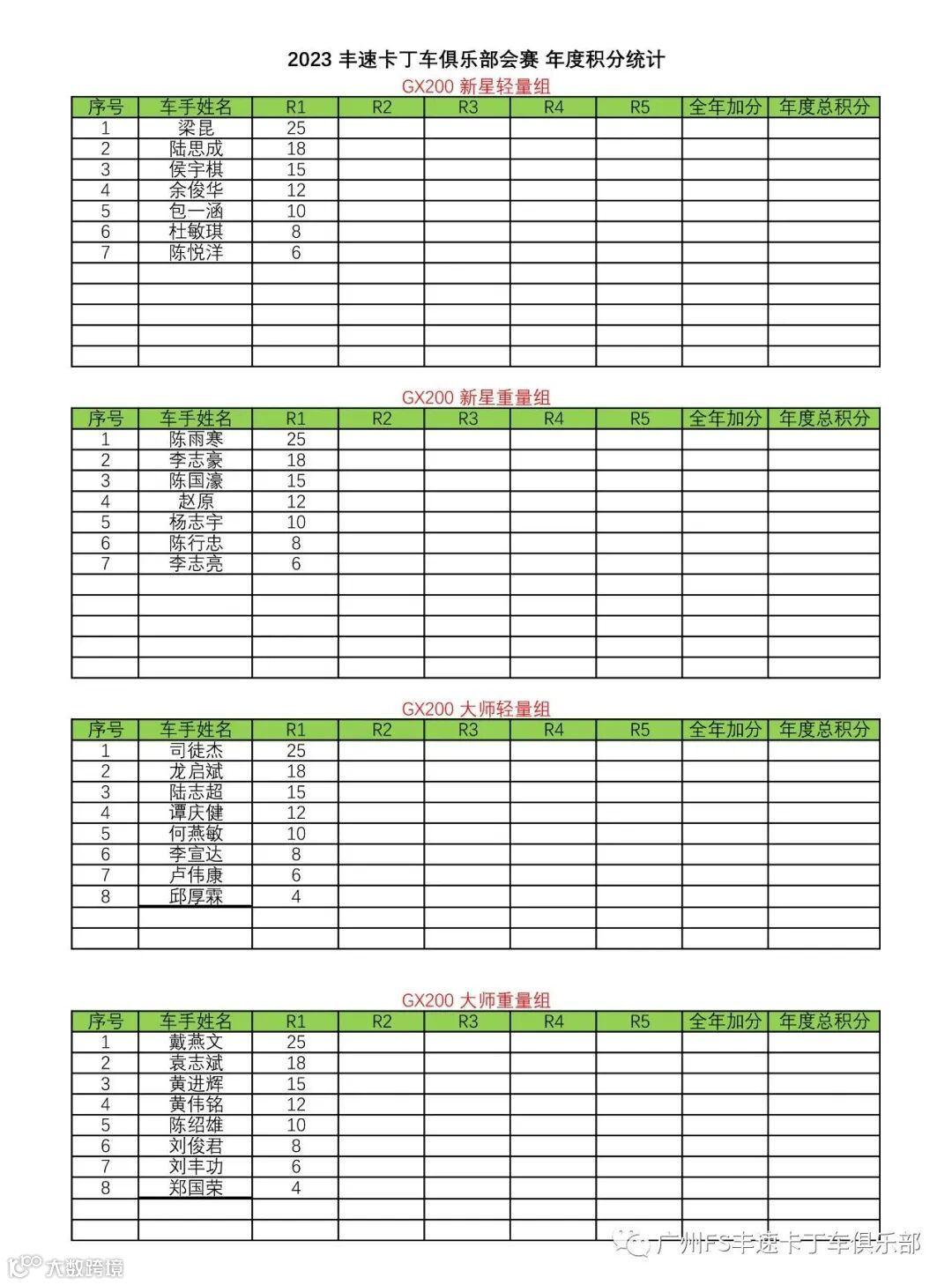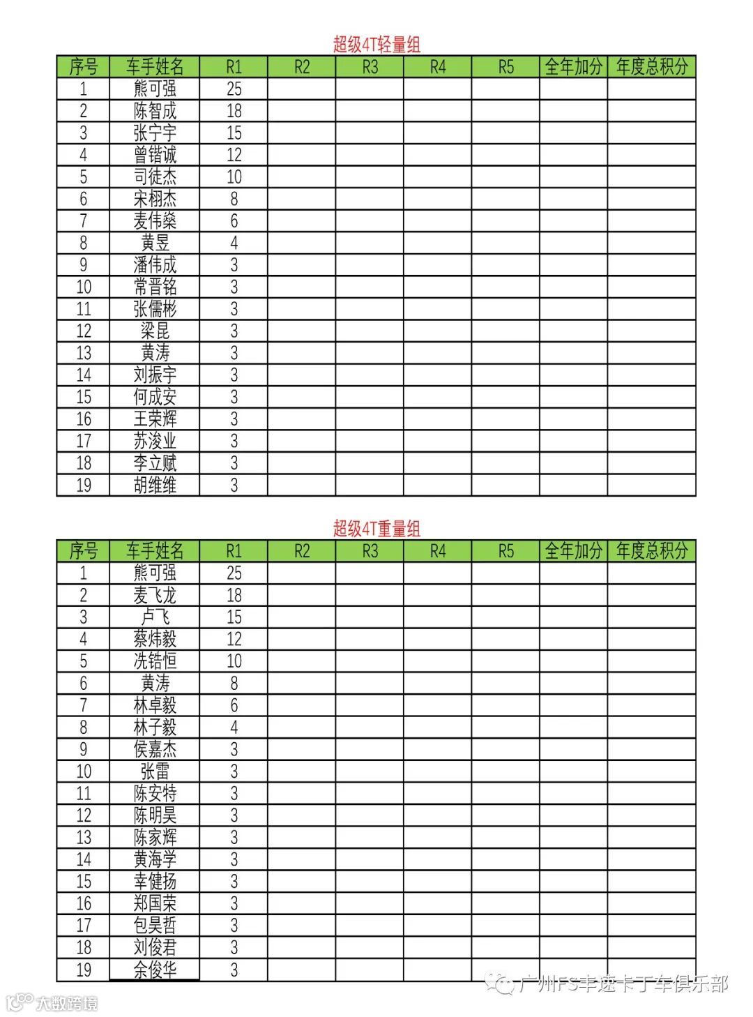 祝贺以上获奖车手!