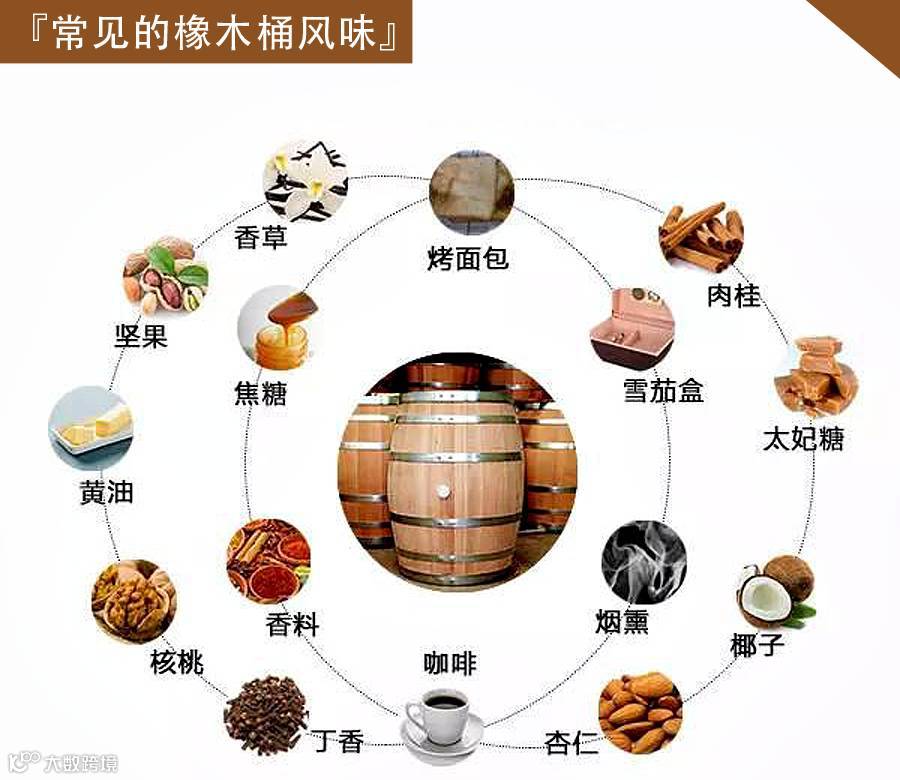 一种来自橡木桶的气息,常见于一些经过法国橡木桶或匈牙利橡木桶陈年的红葡萄酒中