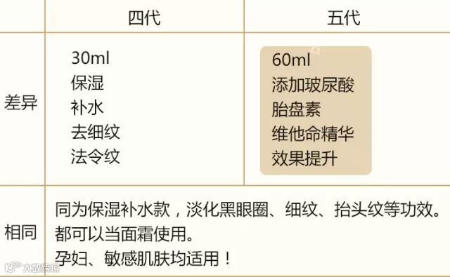 成分上: 添加了B5玻尿酸成份 ,保湿效果更明显,抗皱效果也更加突出,