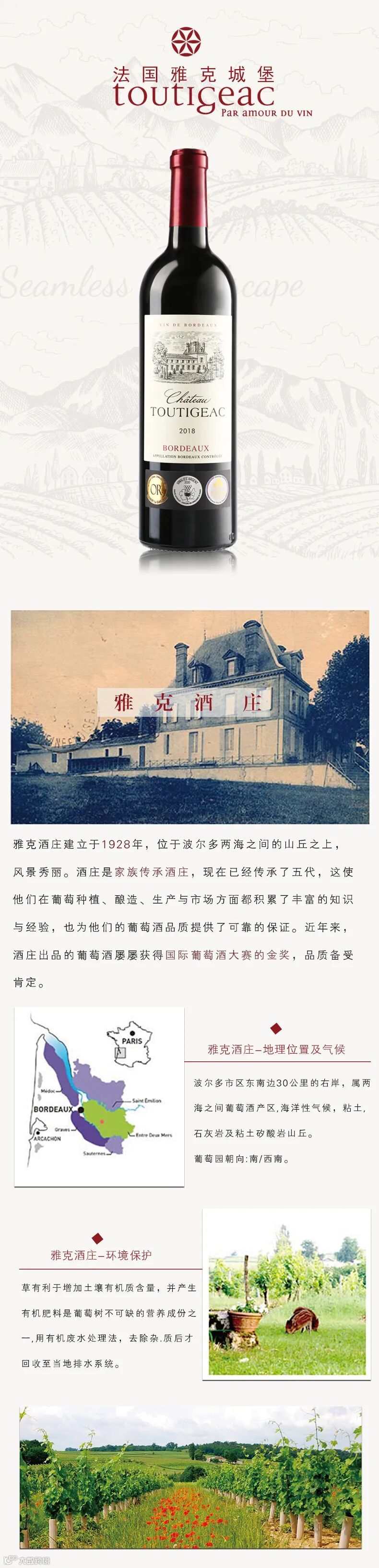 导读:·独立家族酒庄传承五代·获得吉伯特·盖拉德国际大奖赛金奖·巴黎农业大奖赛银奖·7千万品尝客法国葡萄酒大赛金奖·口感亲民柔滑、淳圆,果香浓郁、优雅