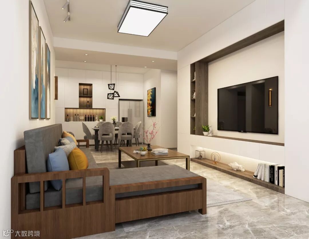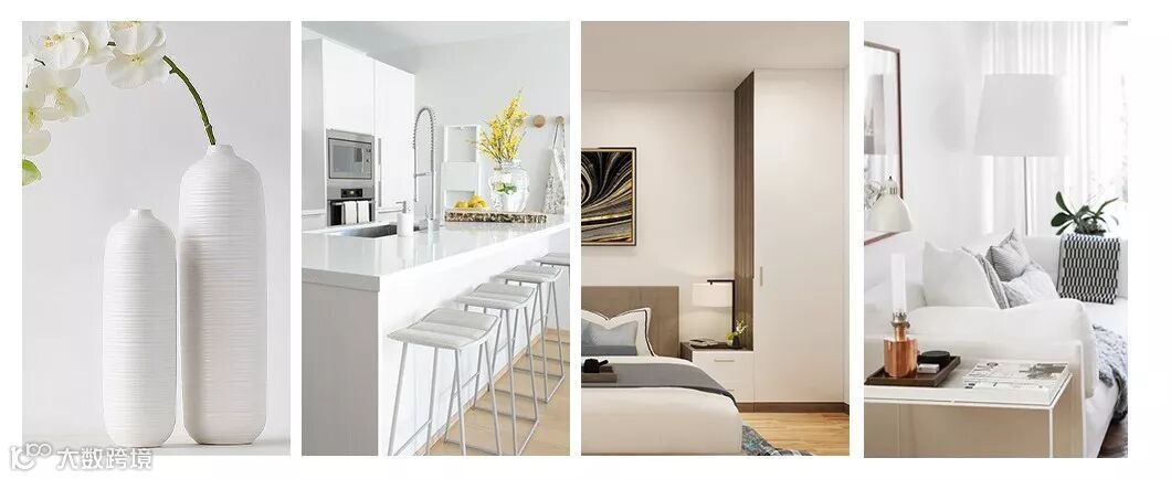 第一个案例映入眼帘的是一个极简主义的白色餐厅,配上木材点缀,加上灰色凳子带来了温馨柔和的感觉,贴合家一般的感觉。在一个没有多余装饰的空间里,每一个纹理和装饰都展现出各自的艺术风采。白色为主导加上木色的点缀让电视背景墙多了一丝艺术感和温馨感。
