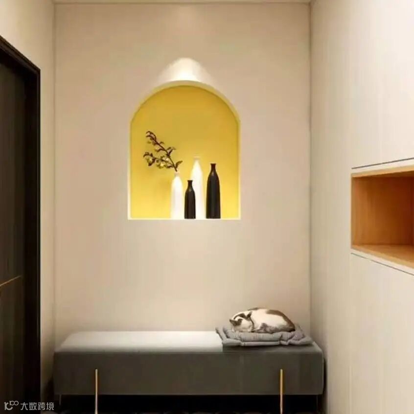 如果不喜欢方方正正的壁龛,也可以设计成拱形、椭圆形或者三角形等异形,更加具有美感。