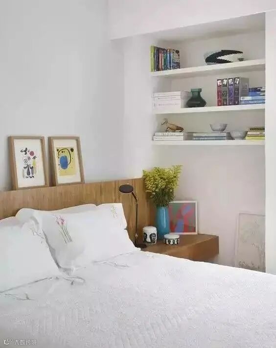 你晚上睡觉前有看书玩手机的习惯吗?卧室的壁龛,可以完美兼容床头柜的功能。
