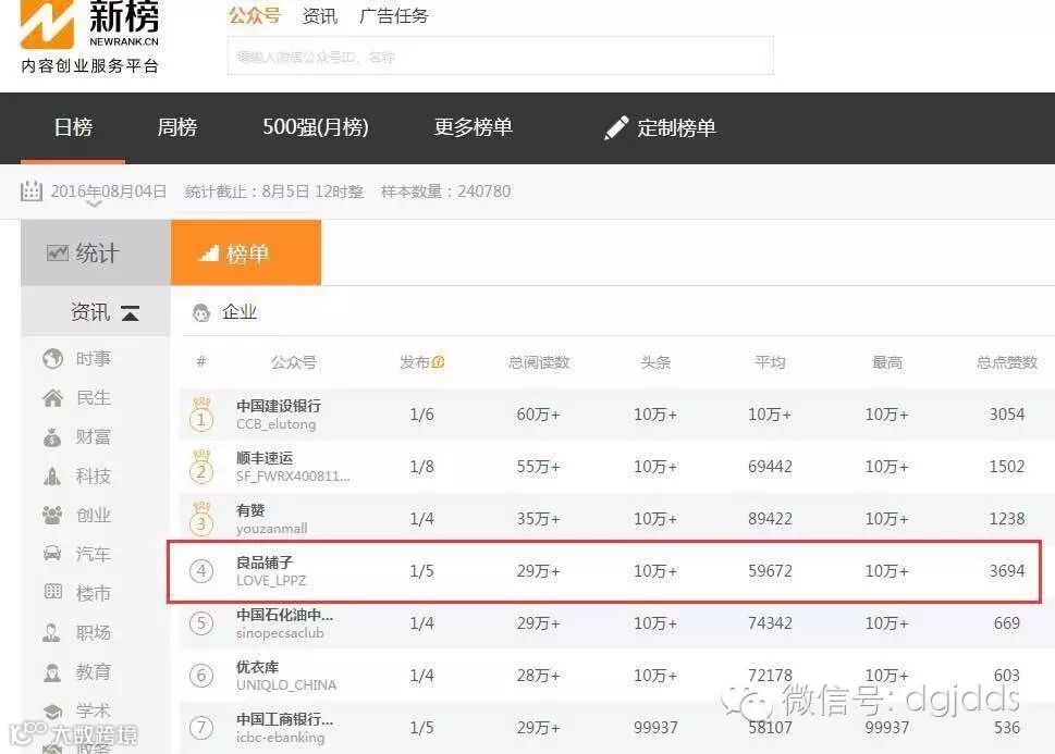 “不做电商等死,做电商找死”,现在成功转型电商的传统企业不多,屈指可数,全国最大的休闲零食企业「良品铺子」算一个。但在移动端,他们至今没上线App, 也没主推自己的官网,「良品铺子」战略副总赵刚说,App他们一直在测试。与之对照的是,「良品铺子」在企业微信公众号、微商城上花的心思很多。就在8月5日,「良品铺子」微信公众号以580万粉丝量冲上新榜企业号第四名,排在前三都是建行、顺丰这类大企业。