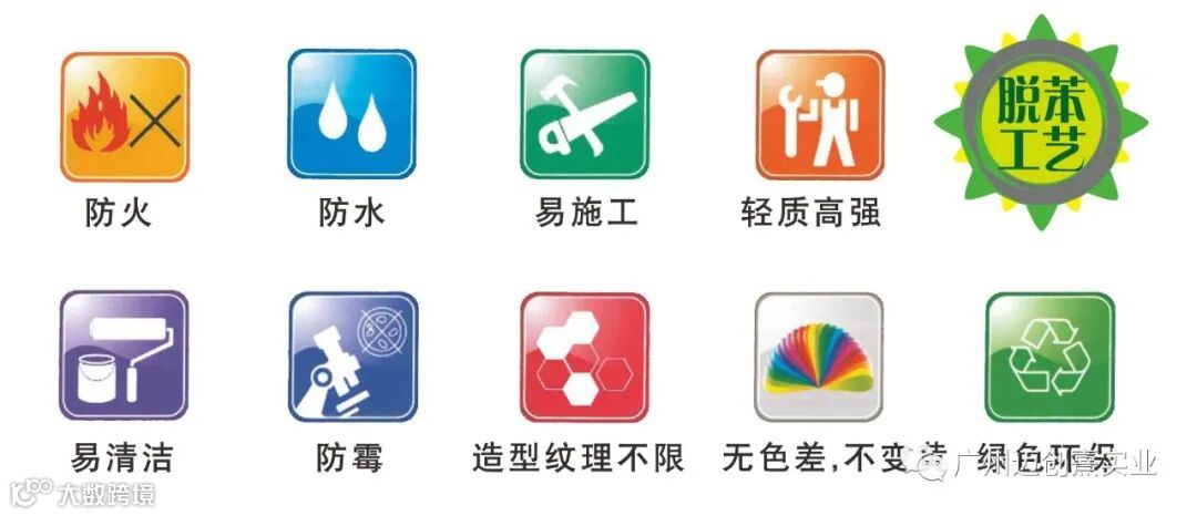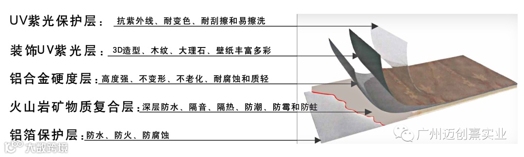 采用火山岩、天然凝胶材料和铝板、碳晶、玻璃等环保优质装饰材料经过复杂的工艺复合制作而成产品具备A级防火防水、隔音防潮、调节空气湿度、节能环保等功能。