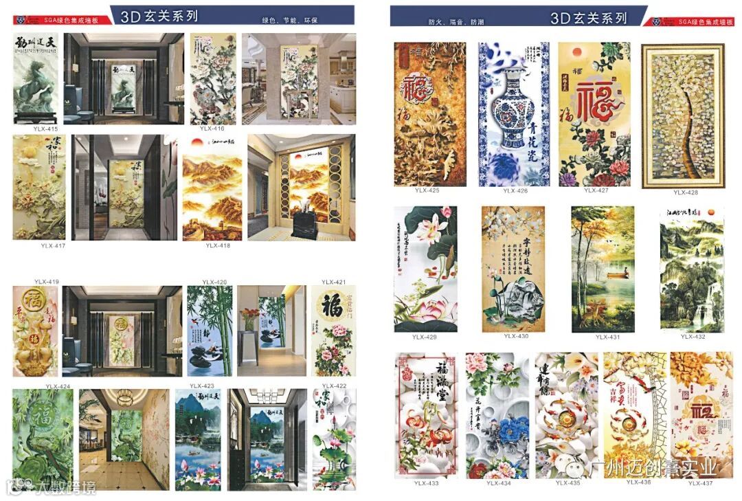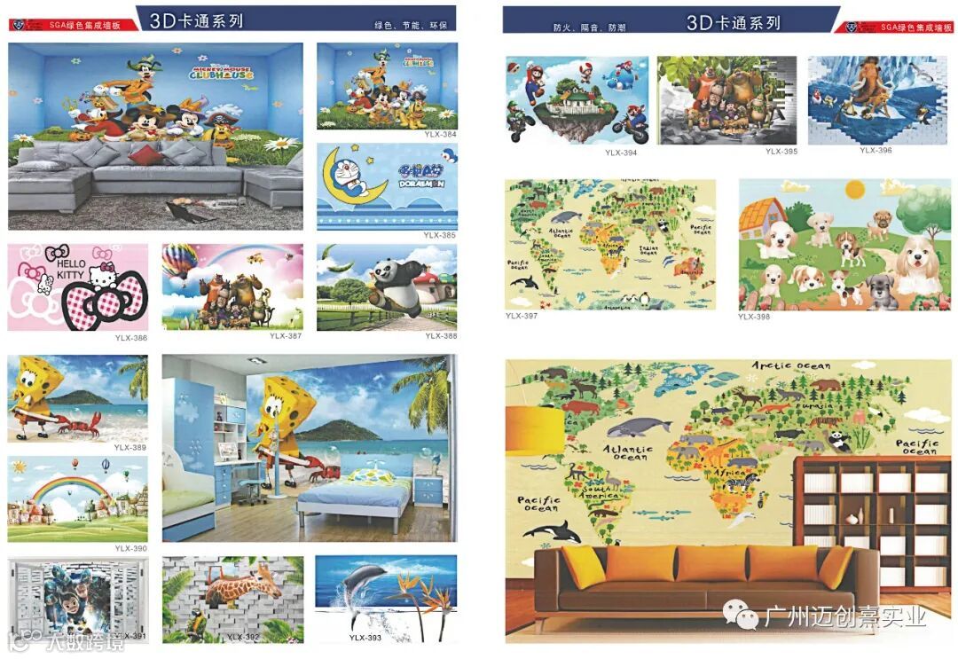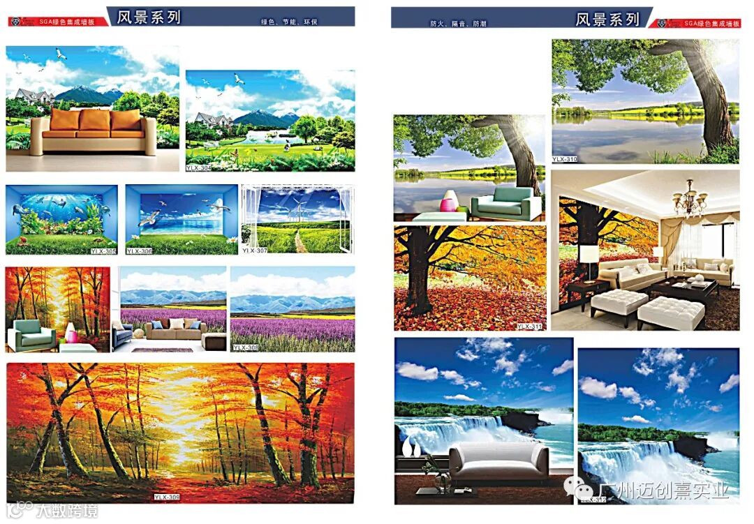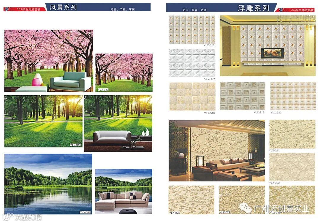 MCX-SGA绿色集成墙板表面造型独特,可逼真仿制你要求的木纹,大理石纹,壁纸效果,同时可做浮雕3D效果图案或平面3D效果图案,可山水、人物肖像、海景、树林、玉石、卡通等等,形象逼真,栩栩如生,随心所欲,为你工作、生活创造无限遐想空间,有种栖身工作地,临近大自然的惬意,温暖与舒适之感。