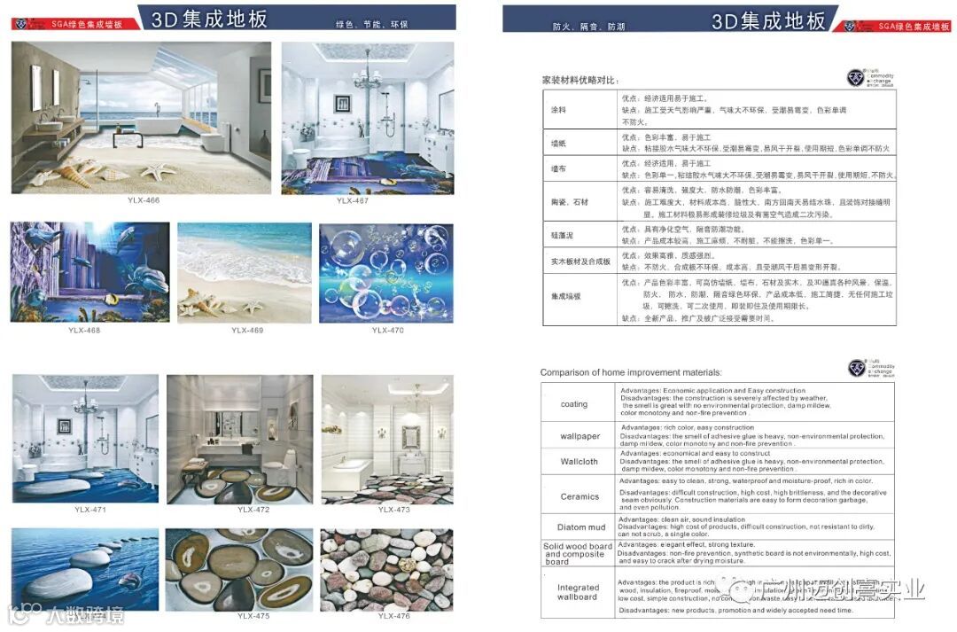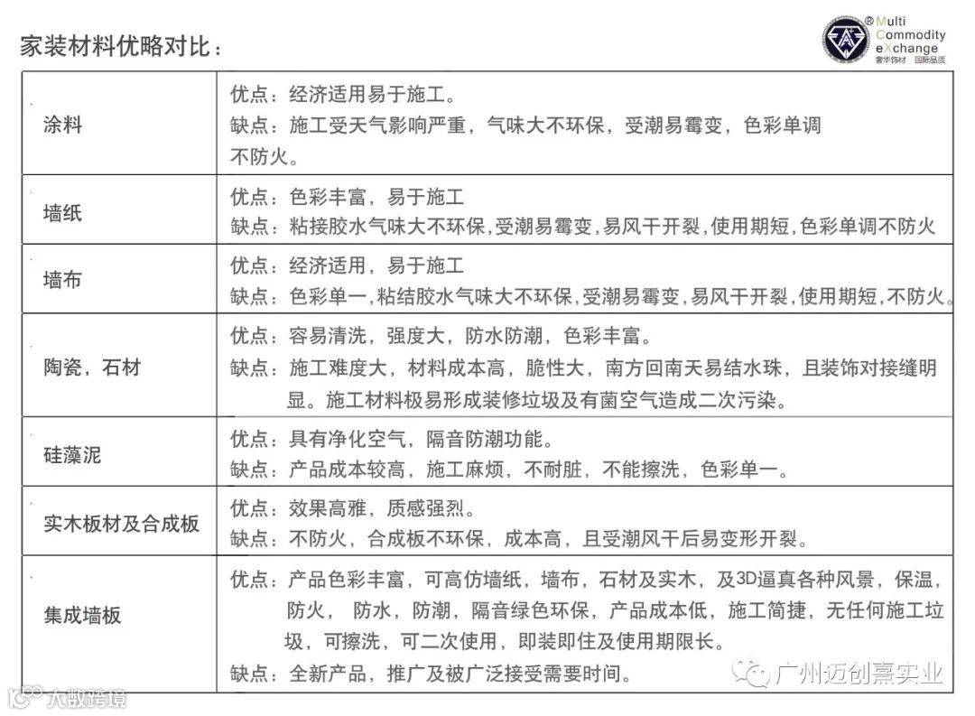 由于MCX-SGA绿色集成墙板采用先进工艺在工厂一次复合加工完成,因此避免了普通装修的毛坯墙基层批荡,中层保温,面层找平,面层装饰处理等繁杂不环保的工序,该墙板在预处理的毛坯墙面,可直接用气钉枪或钢钉枪一次安装完成,极大地节省了人工装修成本,即装即住极大地节省了装修时间,提高了工地交付效率,经初步核算,与普通装修达到入住效果相比,装修人工费节约近1/2,工期缩短1/2,,装修材料价格与真木质材料和真大理石相比,价位低木质为1/2,大理石材质降低近3/4,而且该产品具有木质材料不具有的A级防火功能,和石材不具有的无放射性的功能与普通装修材质相比,MCX-SGA绿色集成墙板装修效果更清新自然,生动逼真,更具视觉冲击力。