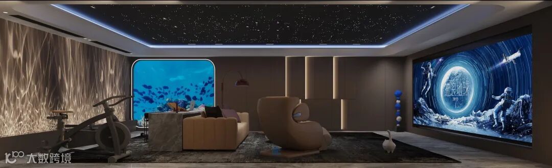 于娱乐、车库一体的地下活动空间展现了一种现代多功能设计的独特魅力。不同的功能区域巧妙地融合在一起,满足了居住者的日常需求,创造了一个独特环境。