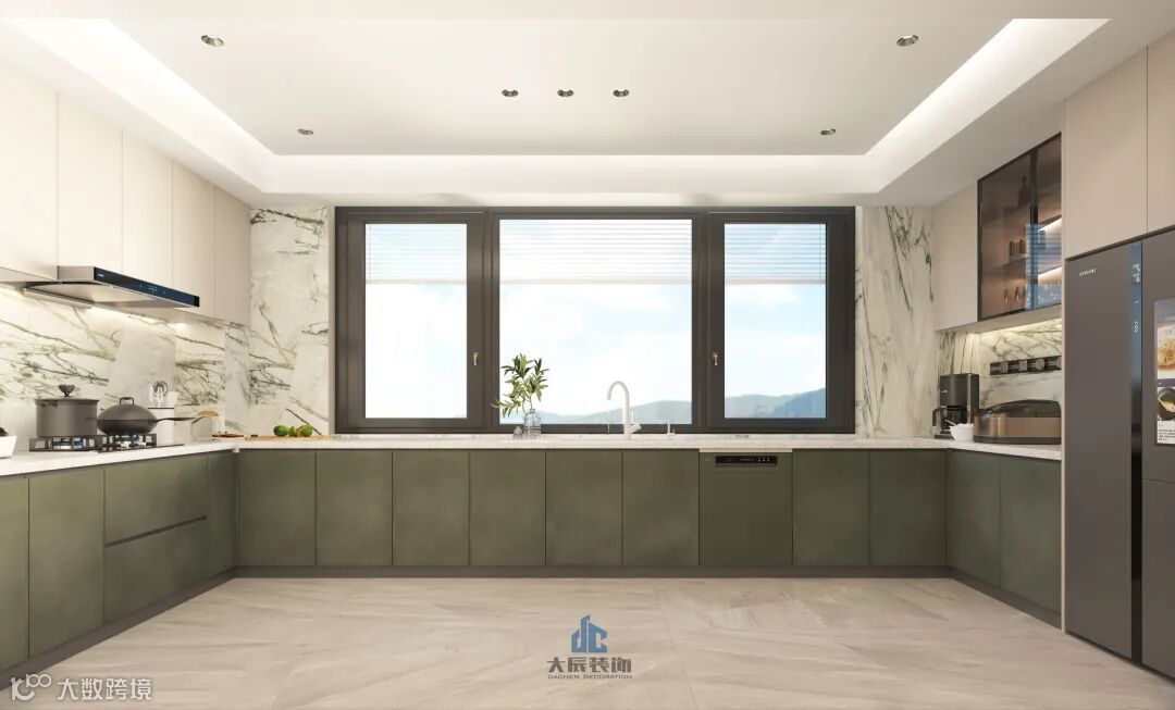 The open kitchen design makes the space more transparent and spacious. The kitchen area is closely connected to the dining area, and family members can interact with family members in the dining room or living room at any time while cooking, enhancing the emotional connection between family members.