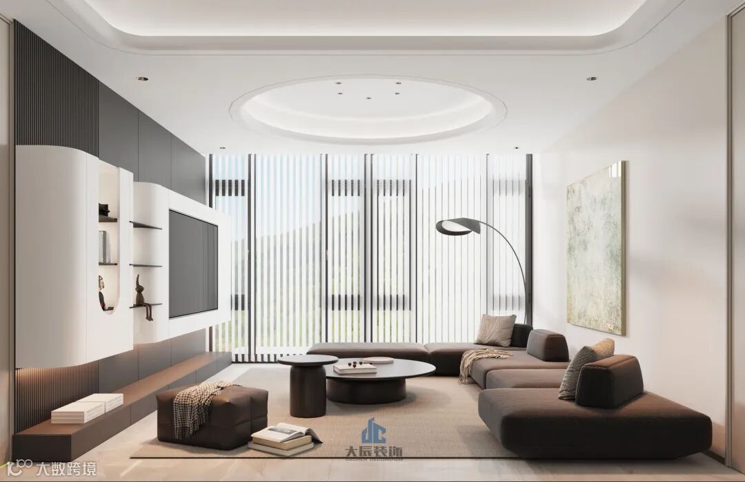 客厅以简洁、直线条的设计为主,没有过多的装饰和繁琐的细节,呈现出一种清爽、干练的美感。