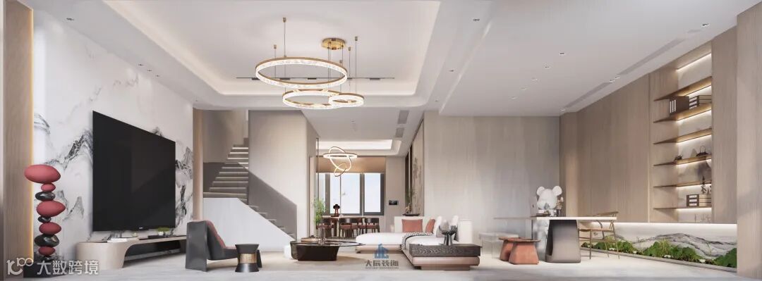 The fish-shaped pattern is one of the highlights of the design of this case, which forms a contrast with the simple style of the entire space, adding a sense of interest and layer of the space. As a symbol of water, fish means flow, change and vitality, which echoes the fast pace and variety of modern life.