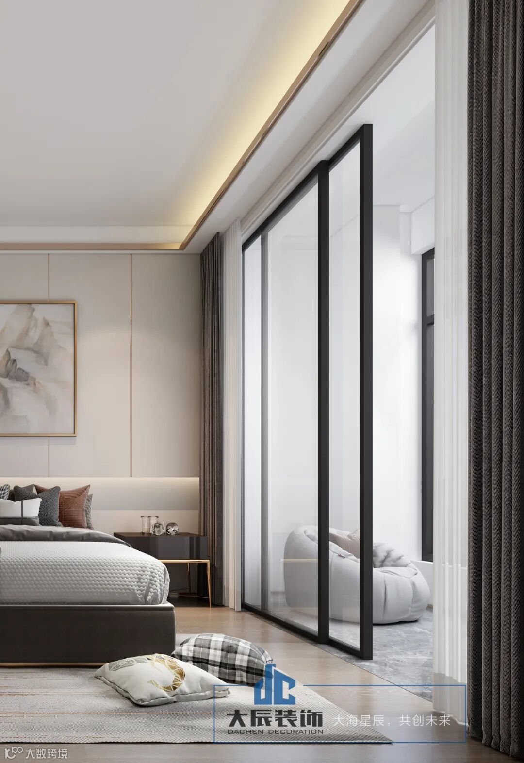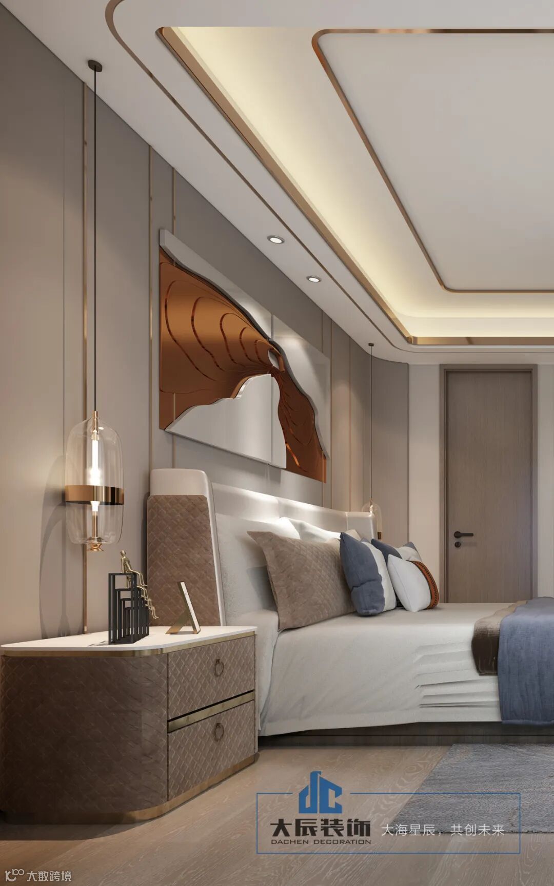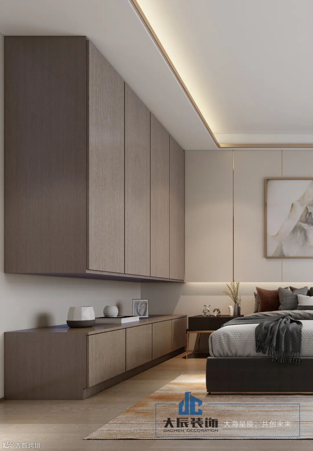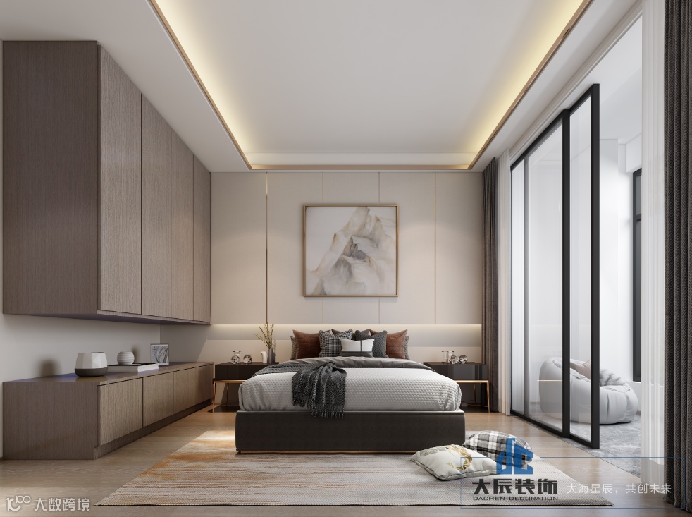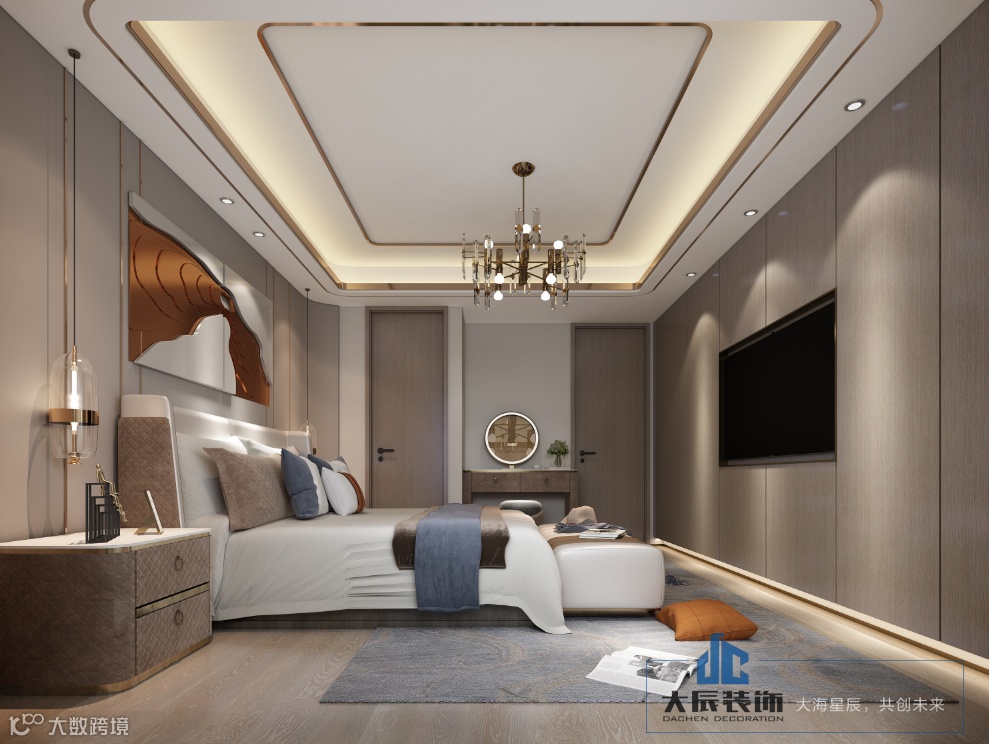 主卧同样以高饱和度色彩为主、装饰营造空间质感带有木色系, 注重简单舒适的大气装修,以创意软装点缀 ,打造出极简轻奢的高雅生活风。有生活,有温度。