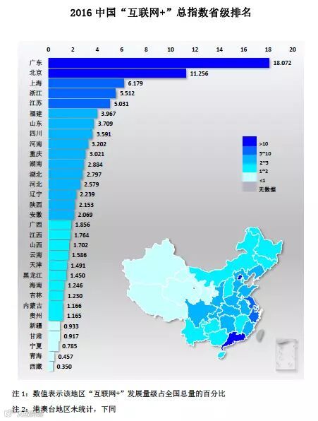 2016年“互联网+”总指数省级排名。