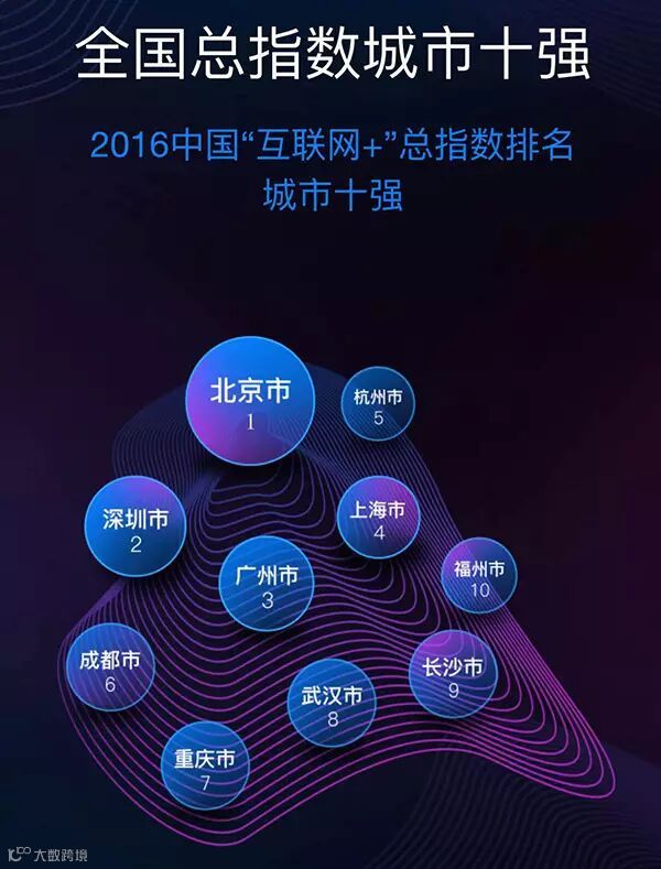 2016年“互联网+”总指数城市十强。
