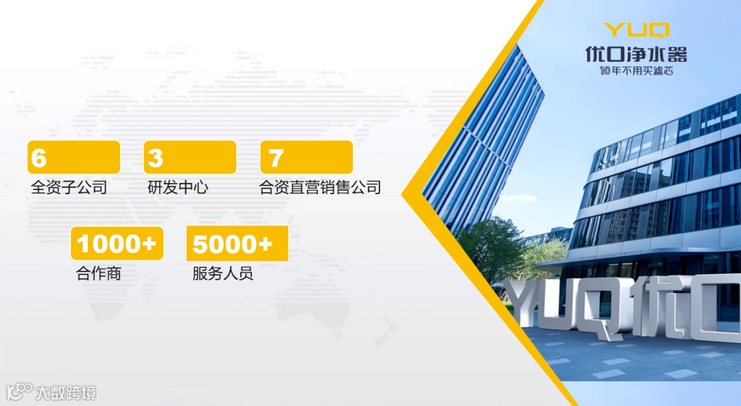 全新成立的优口集团旨在打造好用、实用、耐用,用户买得放心用得舒心的高品质净水产品。立志要做全国高端净水链锁品牌,全球净水领域头部集团企业。目前,集团旗下设立6家全资子公司,YUQ INC美国优口股份有限公司,优口(广东)环境科技有限公司、优口净水(陕西)有限公司、优口净水设备(湖南)有限公司、山西优口水处理设备有限公司、本连硕(佛山)环境科技有限公司,以及3个研发中心(美国纽约、上海、佛山),7家合资直营销售公司,1000+合作商,5000+服务人员。