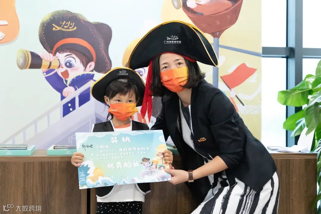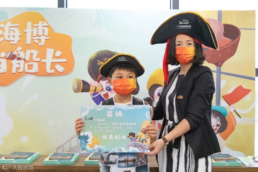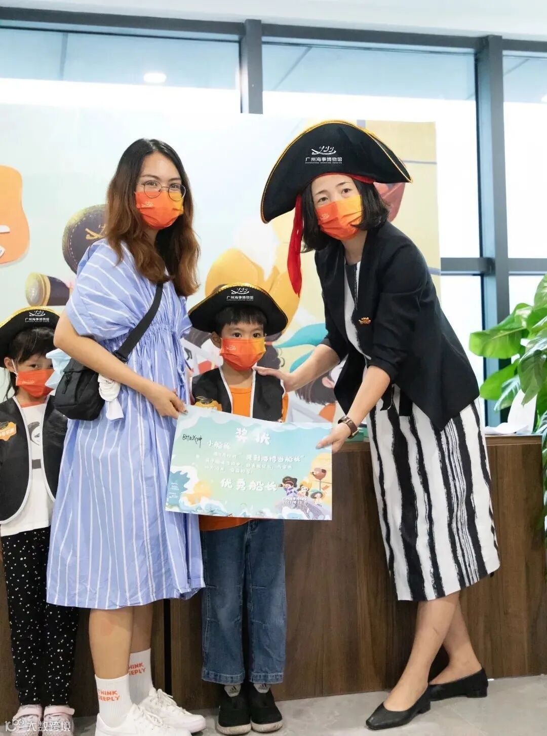 前3名完成闯关的小船长由广州海事博物馆张珂珂馆长亲自颁发“优秀船长”奖状,并获得“航海模拟器”体验券一张、精美奖品一份。