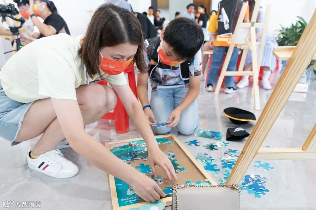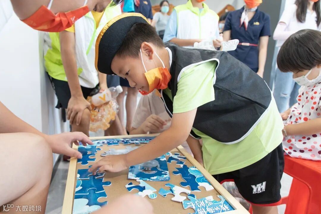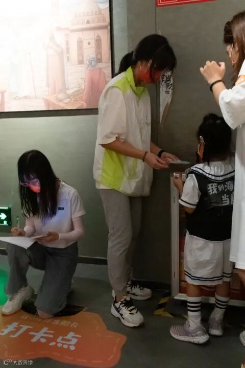很快,率先完成拼图的小船长奔向工作人员,打卡盖章,证明自己顺利通过活动第一关。