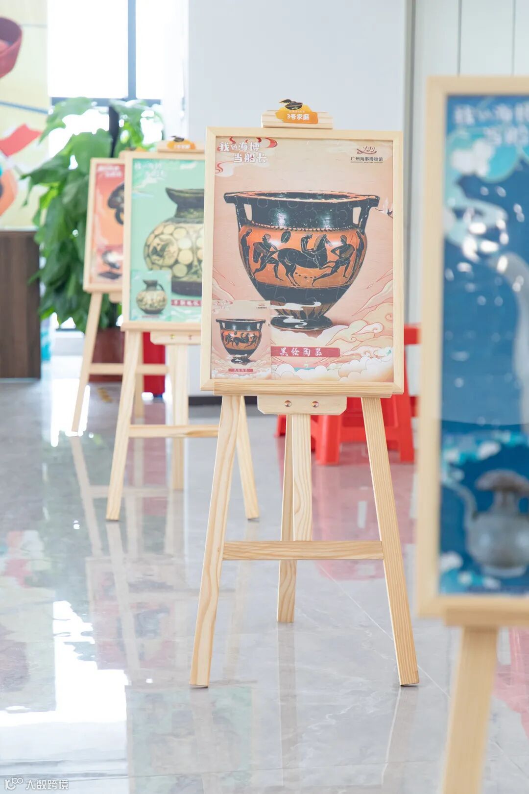 活动选取展览中7个精美文物制作拼图,西村窑北宋青白釉风首壶、南海域出水降真香等。手中的碎片逐渐被拼凑完整,小船长们抑制不住内心的成就感,工作人员也忍不住为他们拍手叫好。