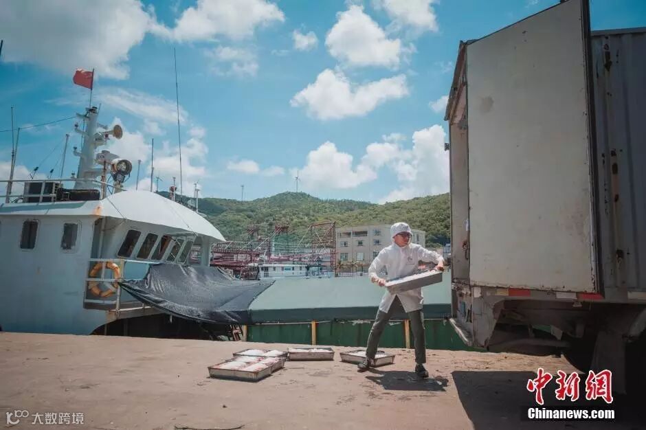 6月27日,广东阳江闸坡镇海陵岛,工作人员在将供港生鲜产品鱼丸的原材料装上车。供港生鲜是指从内地专门为港澳提供鲜活冷冻食品,至今已经历经54年历程,建立了一套规范的出口食品质量安全保障规范。近来在国家质检总局等部门支持下,供港生鲜企业和产品按照同线同标要求回归内地。7月1日,全国首家供港生鲜门店将在北京开店,一些从南海水域出产的食品来到北京“赶考”,首次接受内地消费者的考验。