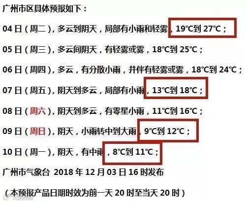 广州市区这一周温度将会持续在9℃~18℃