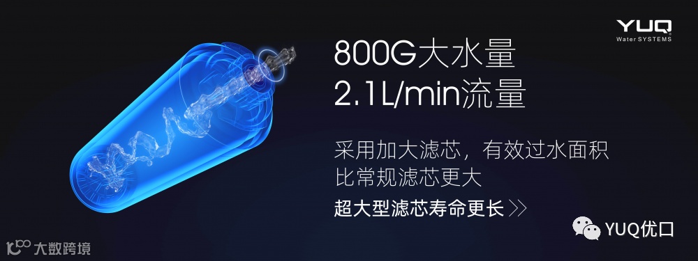 6、当前市场上的线净水机RO膜总净水量在2吨左右,本次优口发布的S800,总净水量实验室测试能处理纯净水13吨,一般五口之家能用10年以上大降低了后期换新成本。