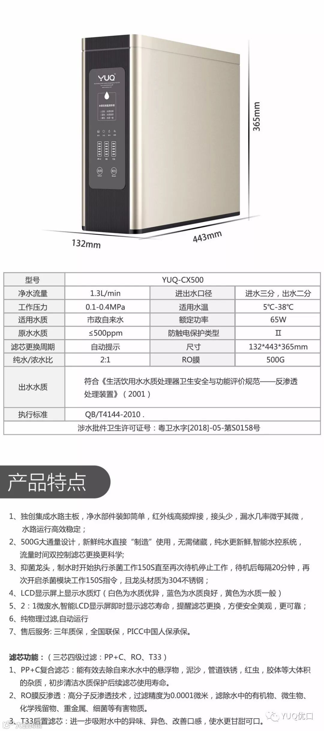 导读:净水未来风向标,优口畅享系列CX500全球同步上式!亮点:智能化、大流量、高颜值、低废水、小体积。