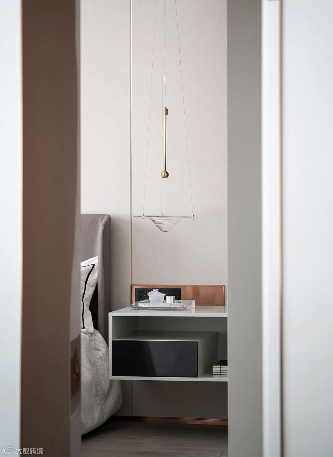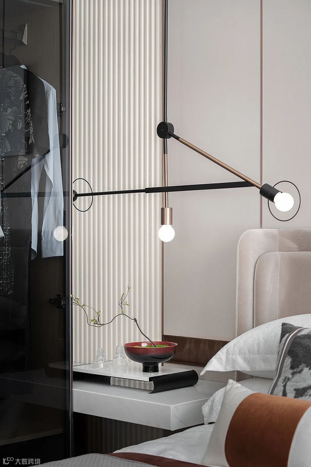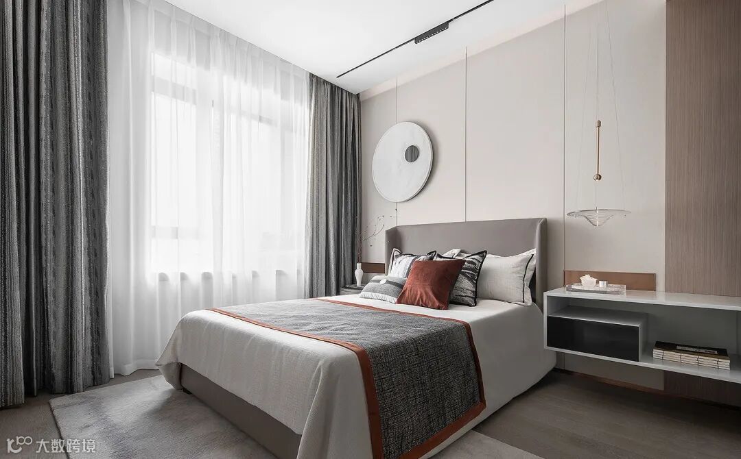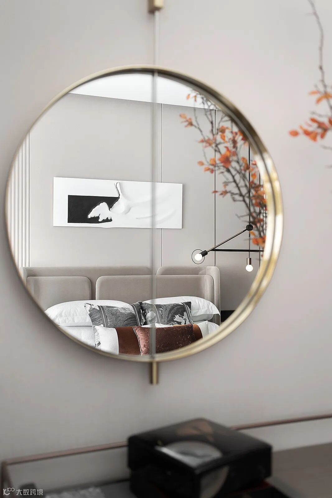 次卧以“圆”意团圆,以“圆”寓智慧,不经意间抬头,“几枝红杏入镜来”,为室内增添一抹娇羞,就连墙上的床头画,似乎也缓缓褪去一身疲倦,含隐蓄秀。