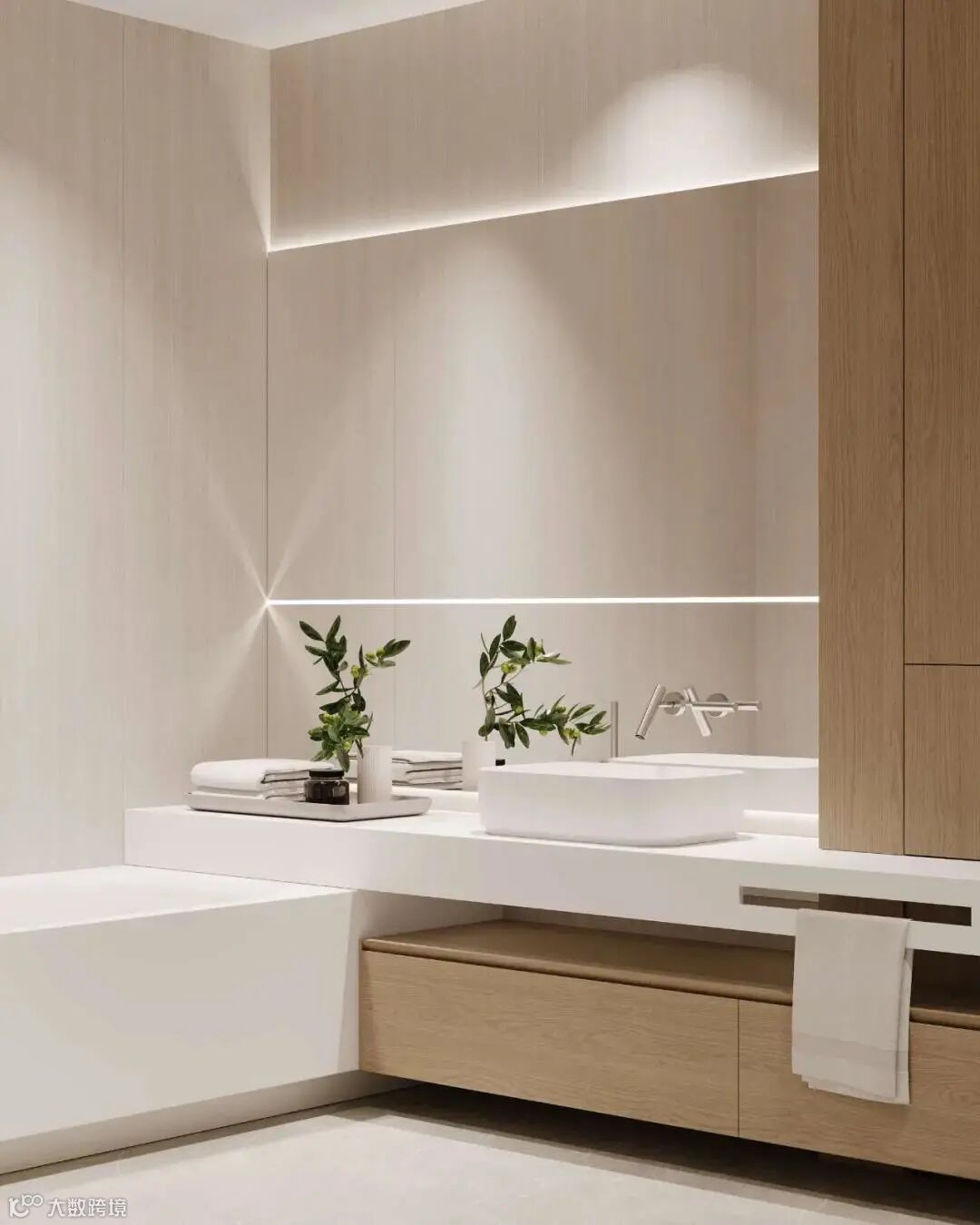 卫生间采用了干湿分离的设计,不仅干净卫生,浴室更是贴心采用了柔和的线条和暖色色调,营造了慵懒舒适的放松环境,让人冲净平时生活中的疲惫。