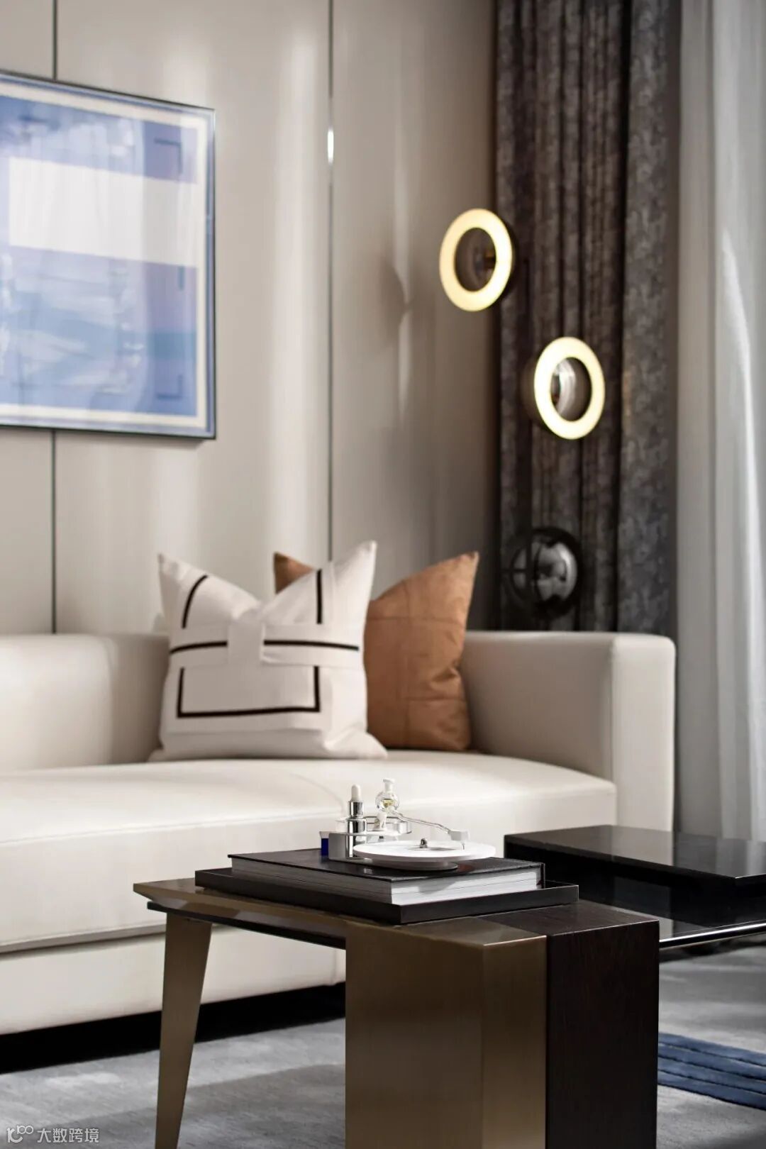 以块面和金属的线条曲折而成的沙发,通过镀金属的立面和精致的双缝线勾勒出空间的质感,为空间绘入一点厚重和深度。
