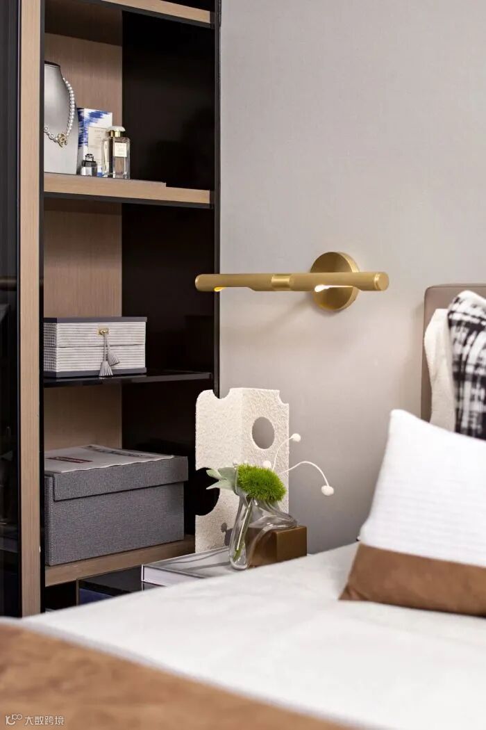客卧在延续空间整体风格的同时,加大了深木色的比例,多了一丝成熟稳重,以满足家中长辈的设计需要。