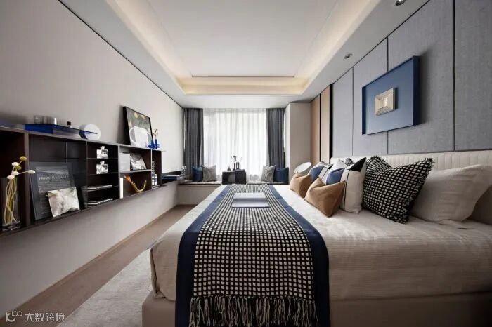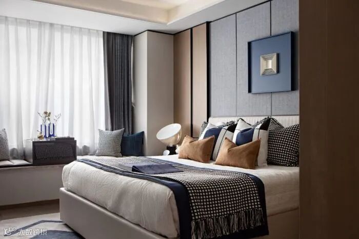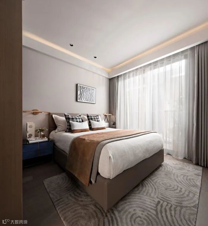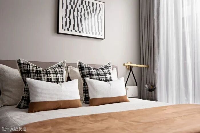 现代雅静的设计使卧室空间更加地时尚舒适,和煦的阳光透过布幔洒进屋内,为室内的每个物件都覆盖上一层朦胧的温暖,恬静又轻柔,美好的一天就在这里开始了。