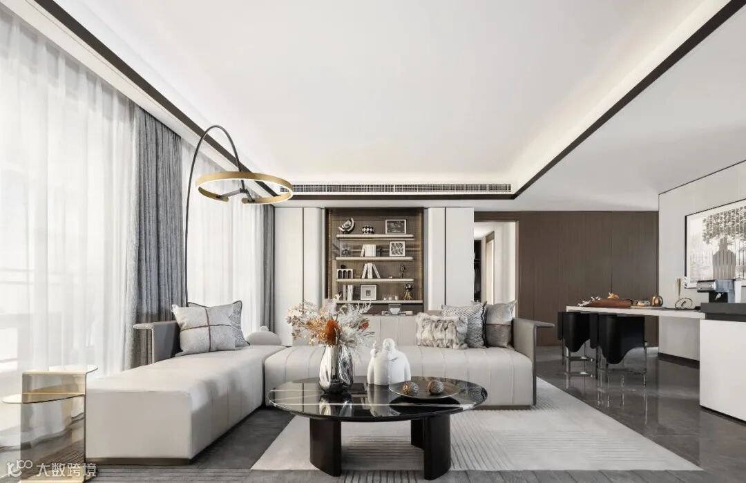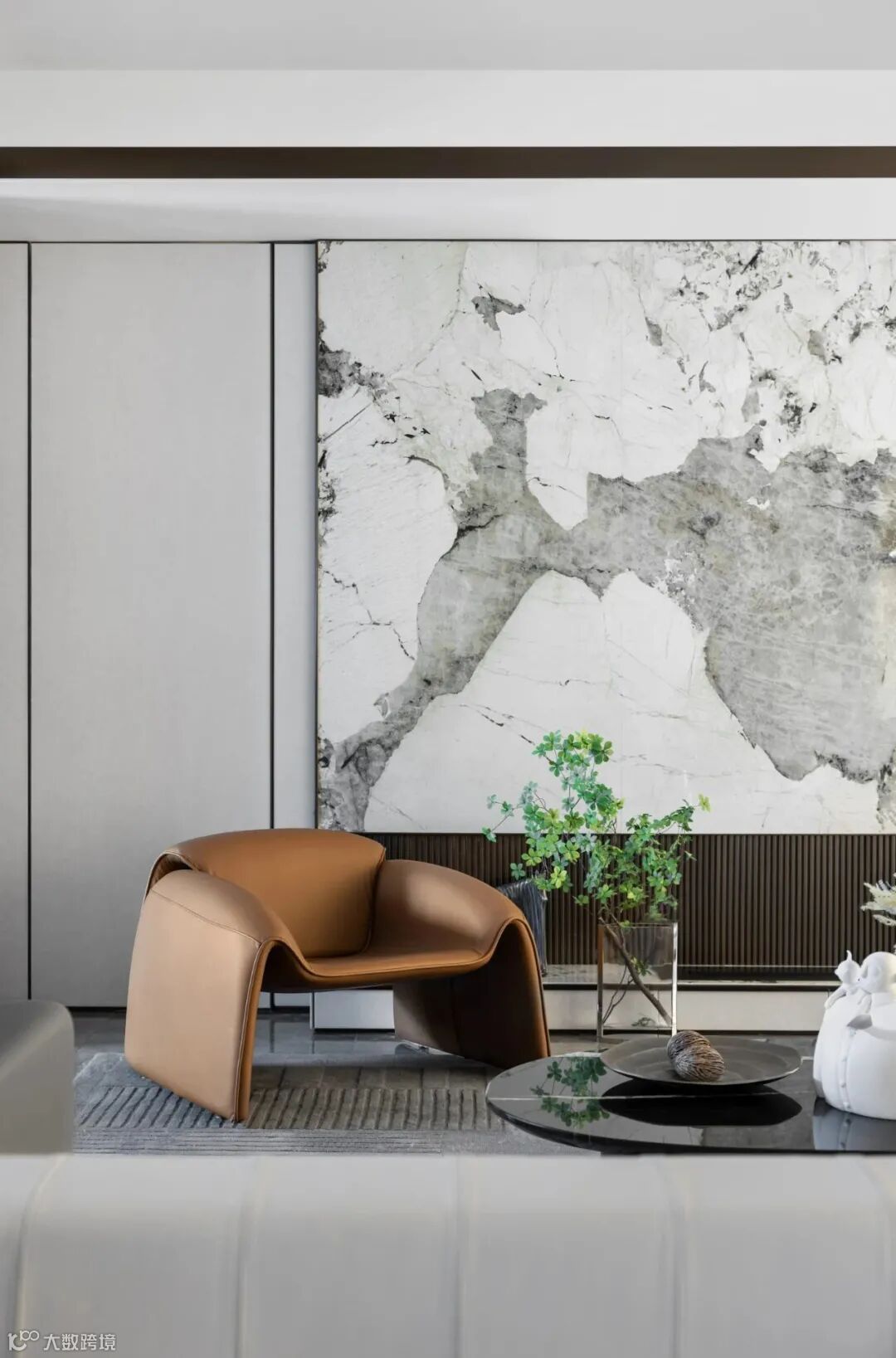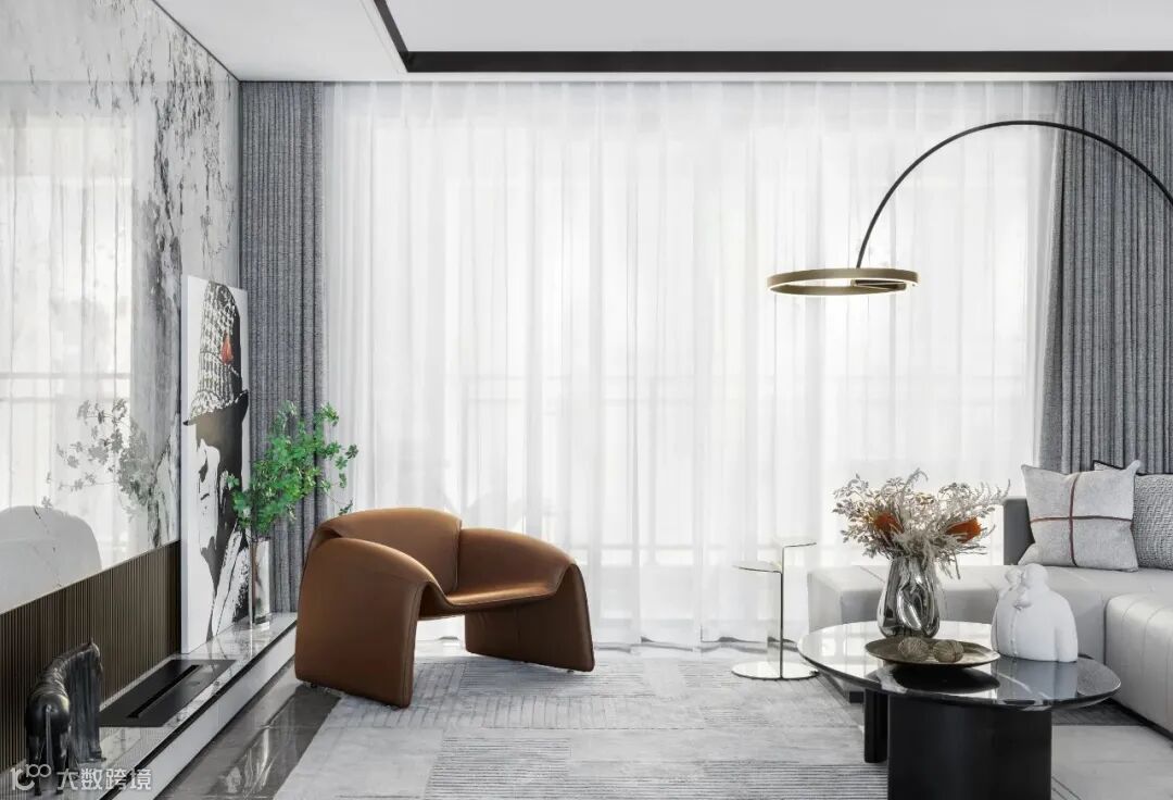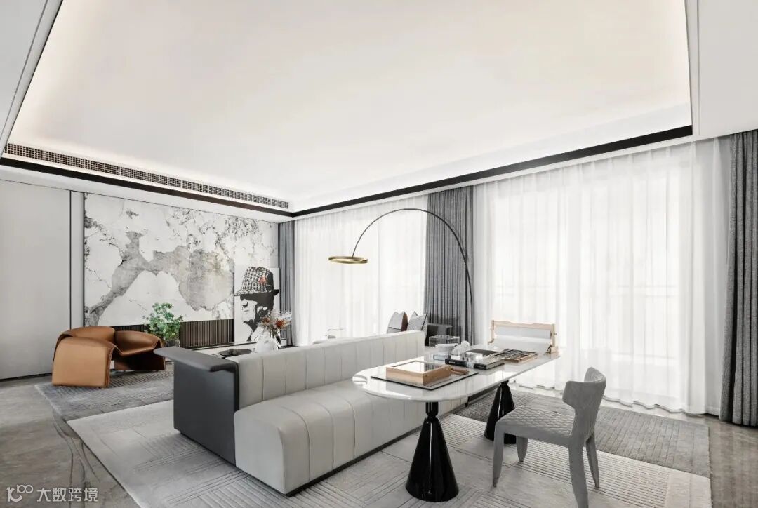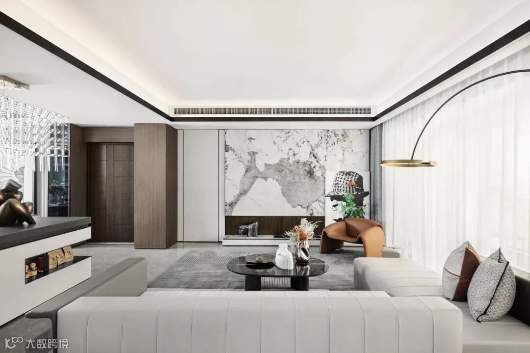 大理石背景墙、艺术造型家具,现代感的落地灯,从外到内,浑然一体,充满魅力,其魅力在于平衡与温暖和触觉的自然。
