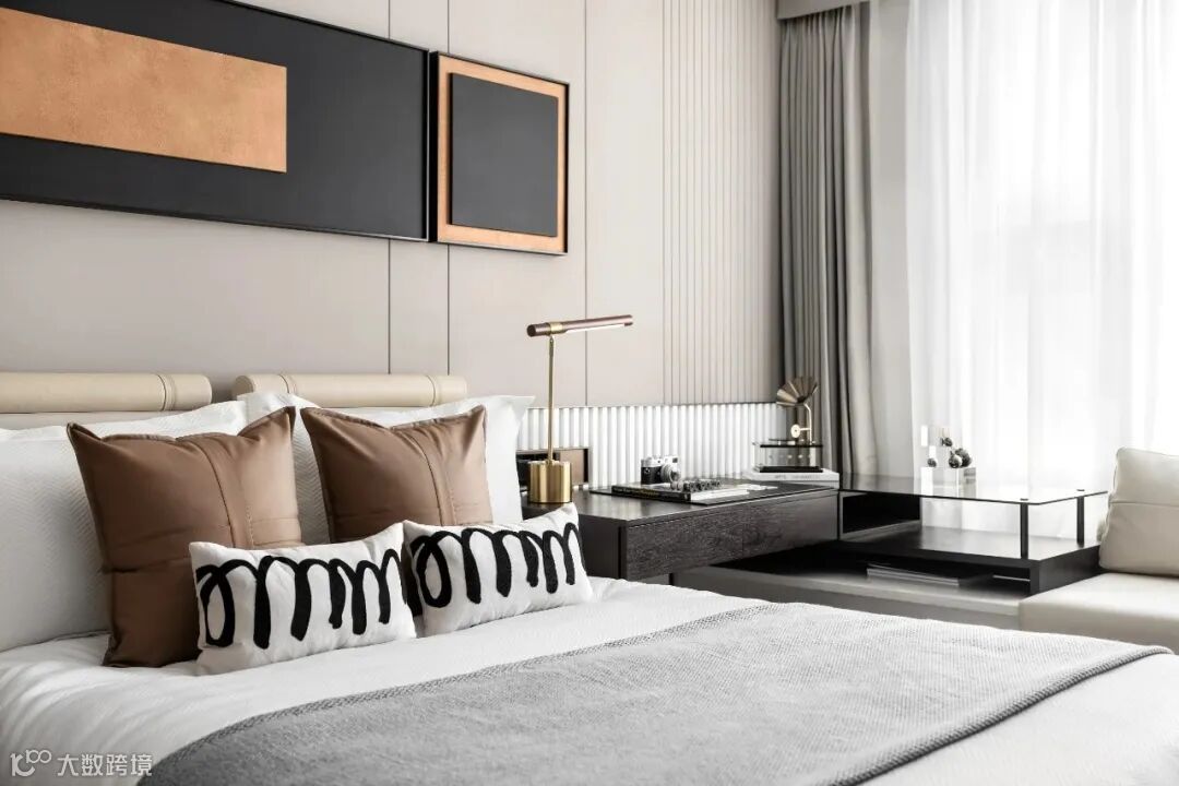 卧室无主灯的设计温和明亮,床头灯与现代感挂画共同表现出丰富的层次。沉淀着主人的心境。