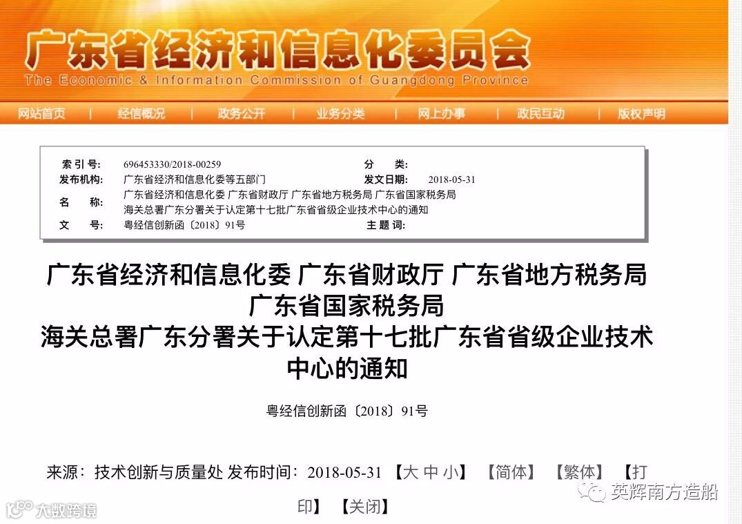 近日,广东省经信委公布了第十七批省级企业技术中心认定结果,英辉南方技术中心榜上有名,这是认定专家组对英辉南方铝合金船舶设计水平和技术实力的高度认可。