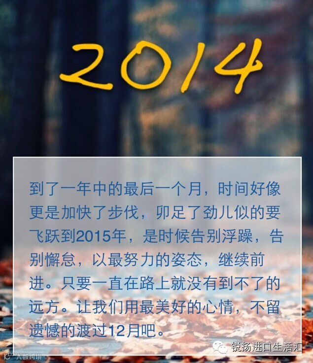 锐扬进口商城终于,2014翻到了最后一天,回想这一年,是什么样的心情?平淡如常,还是刻骨铭心?