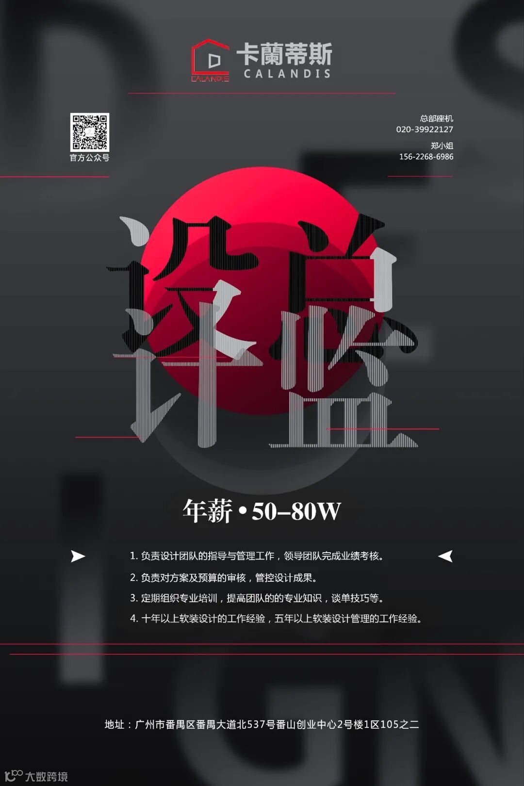 1.负责设计团队的指导与管理工作,领导团队完成业绩考核;